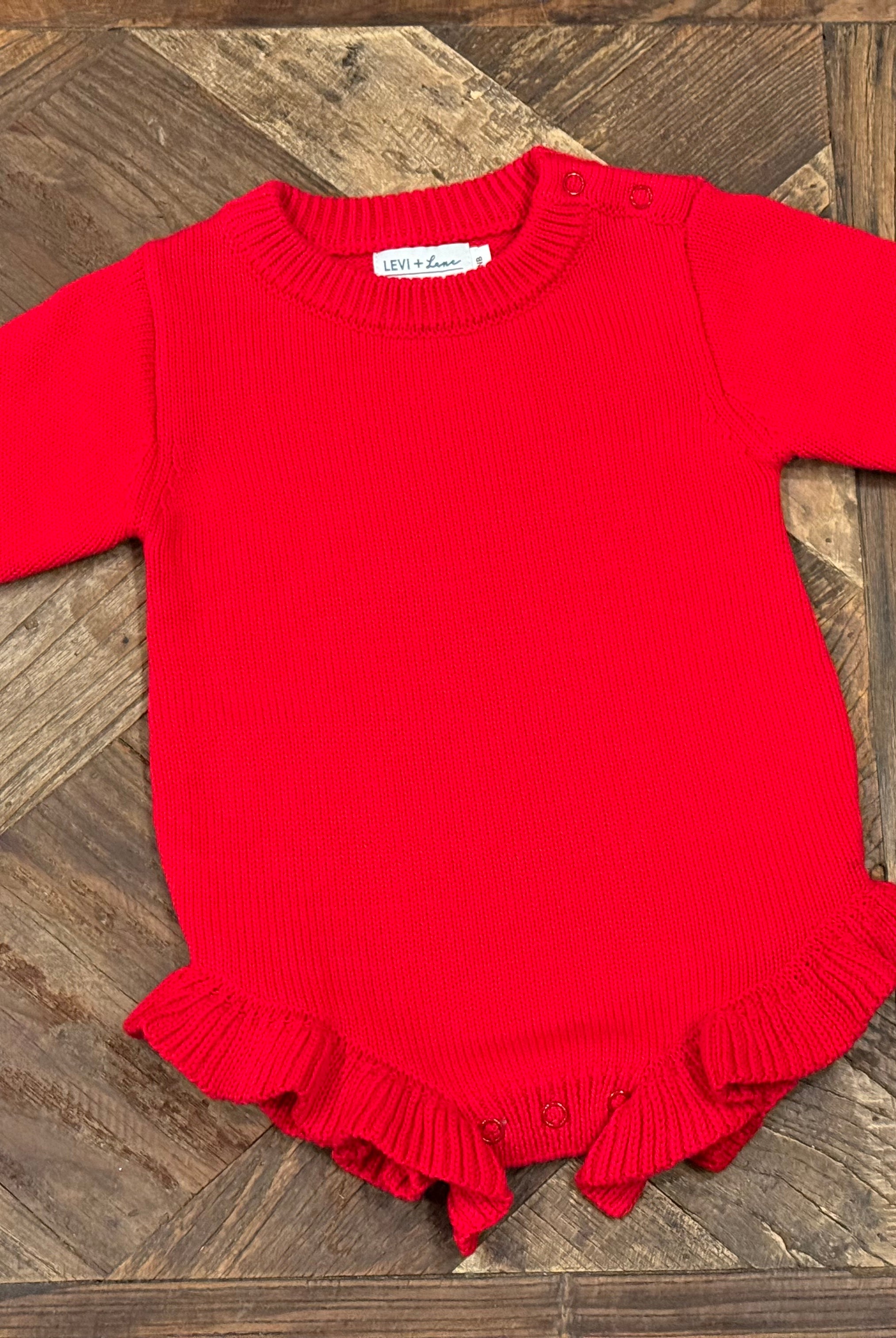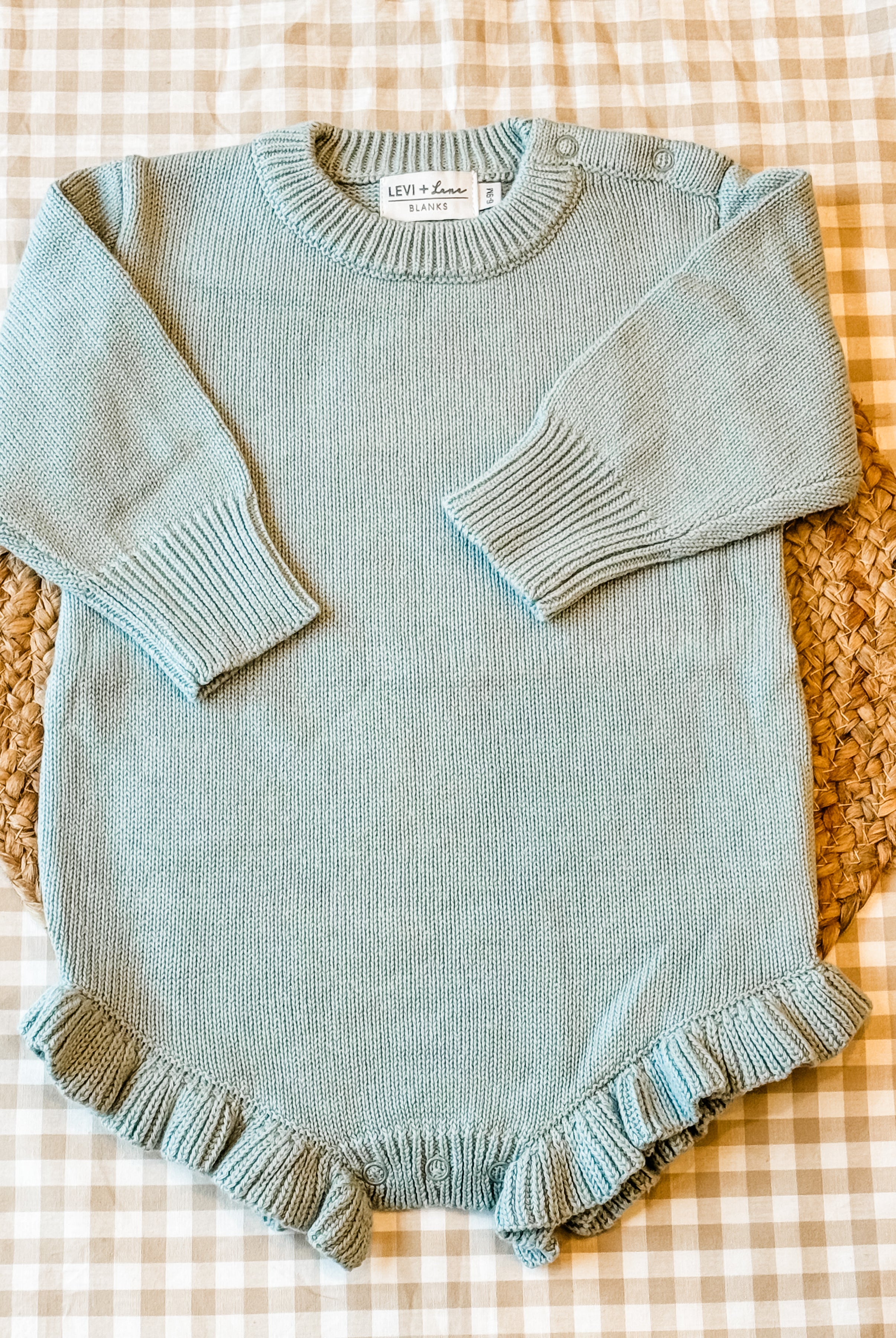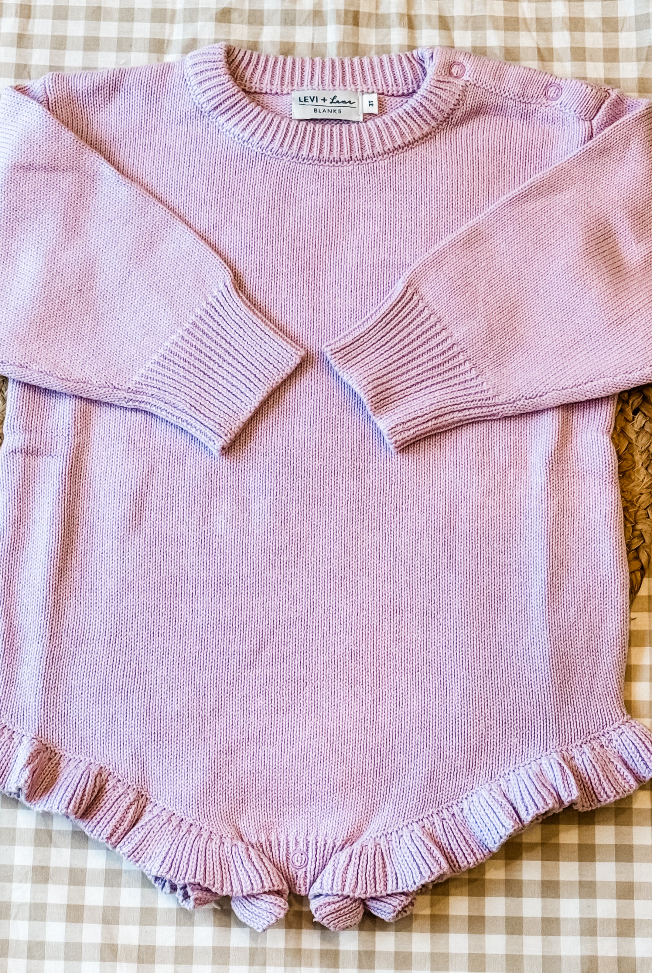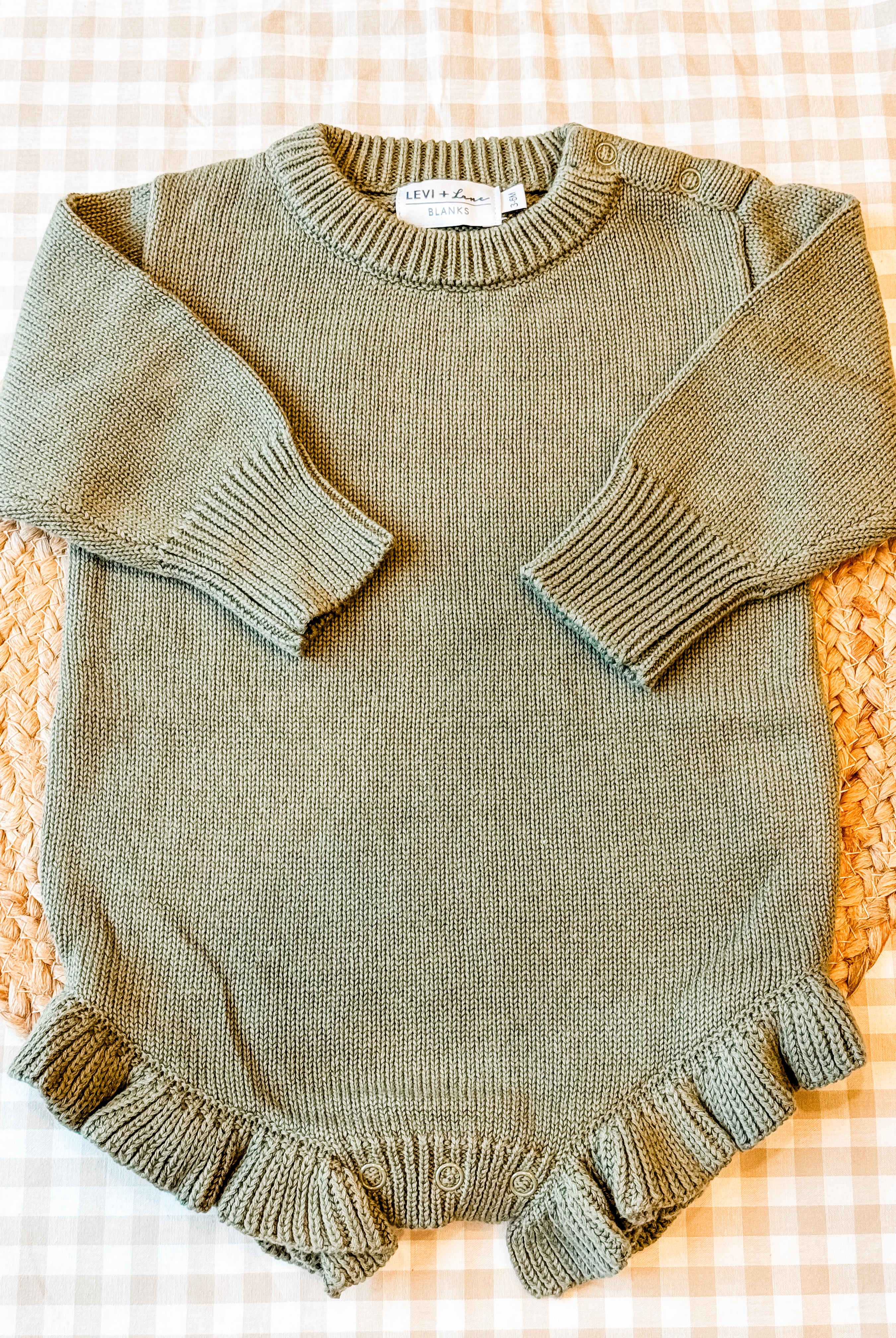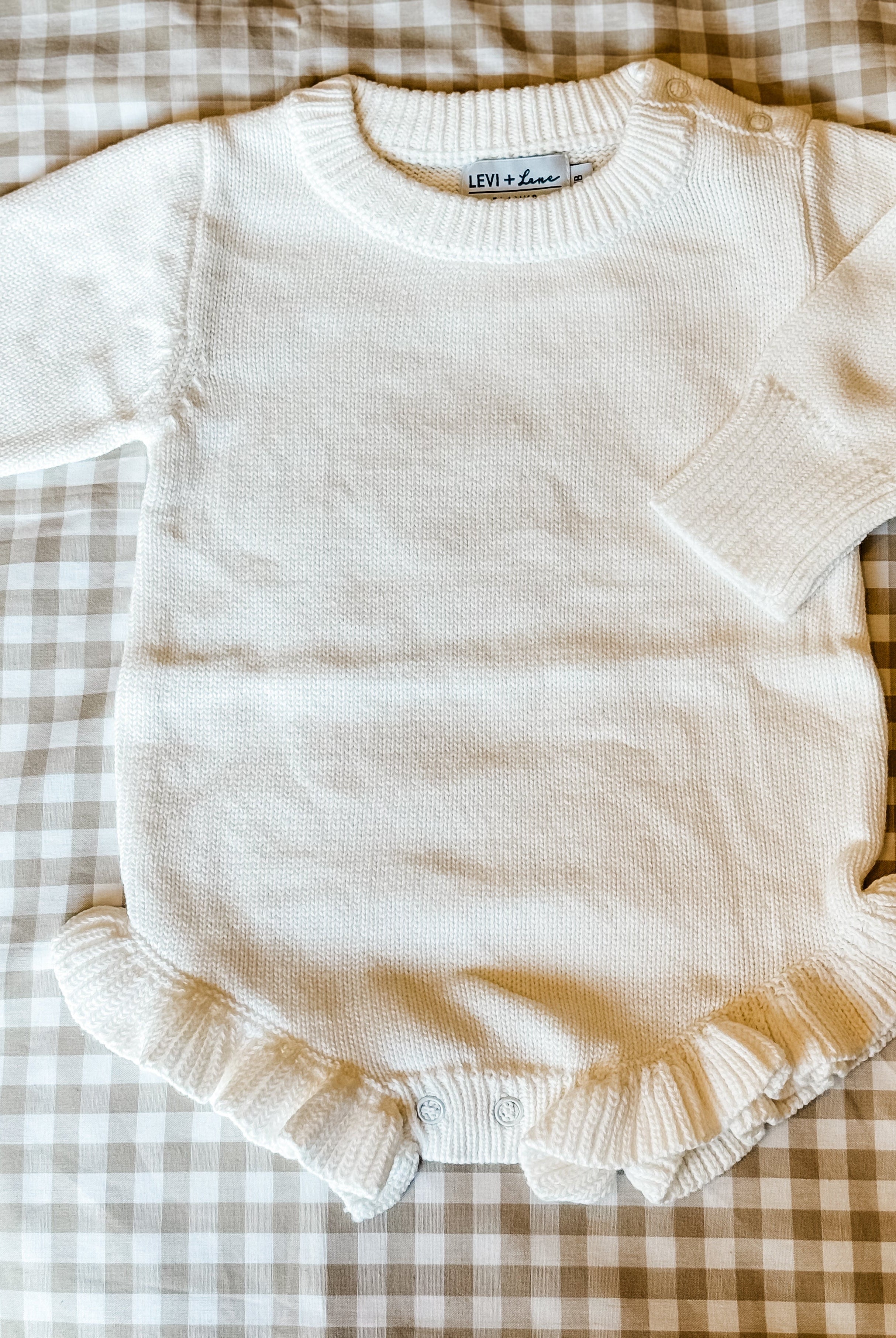 Long Sleeve Knit Ruffle Romper - NEW TTS SIZING