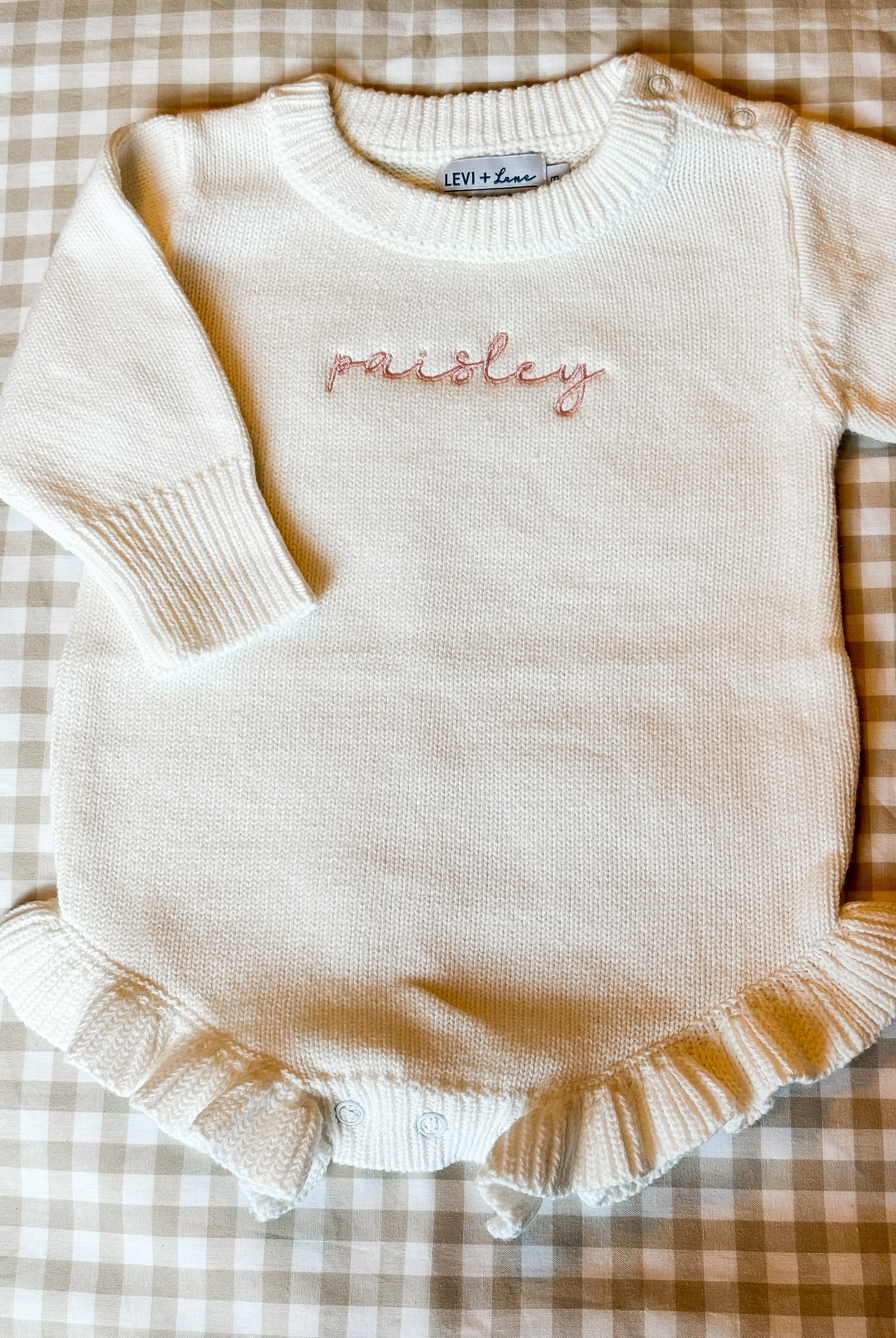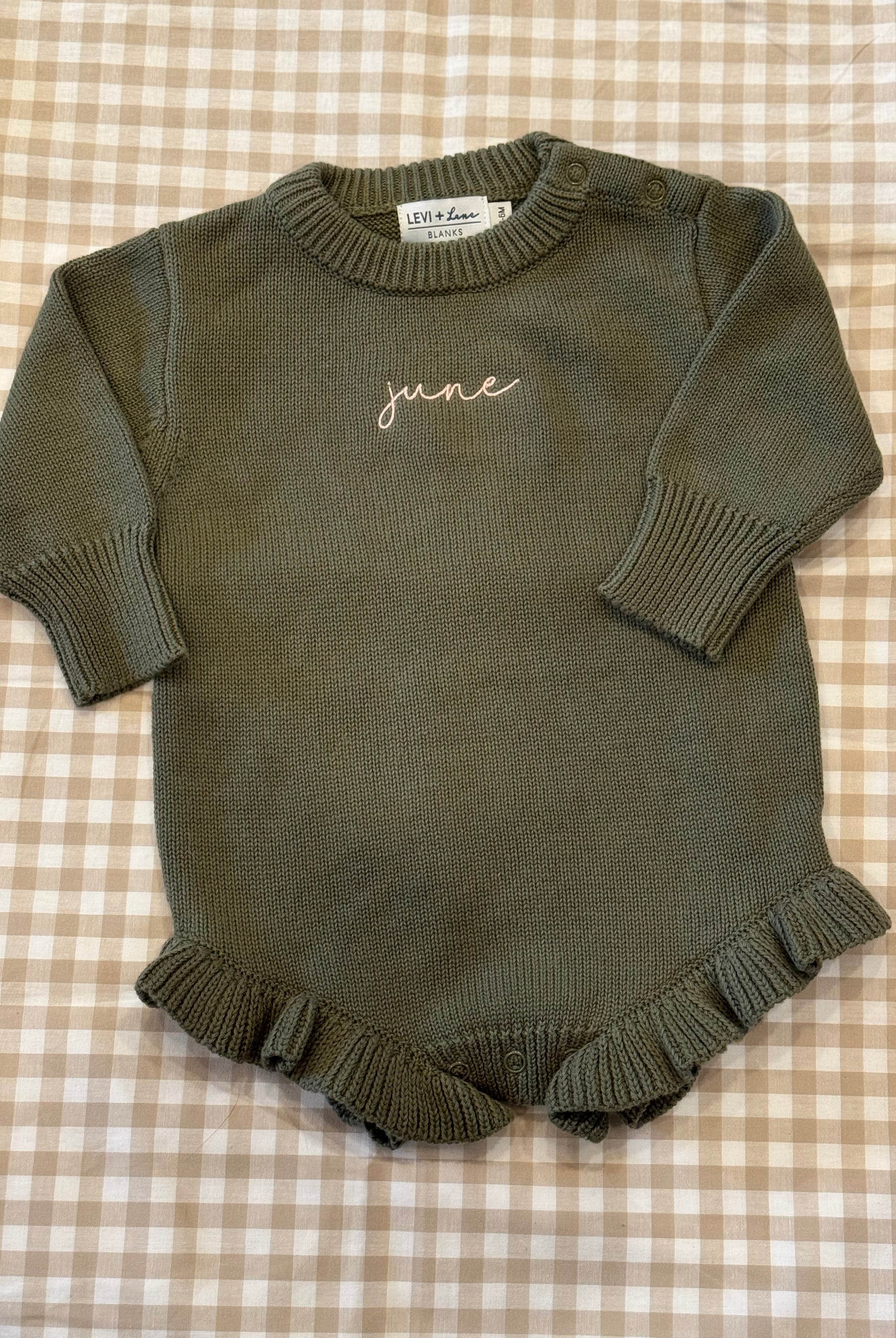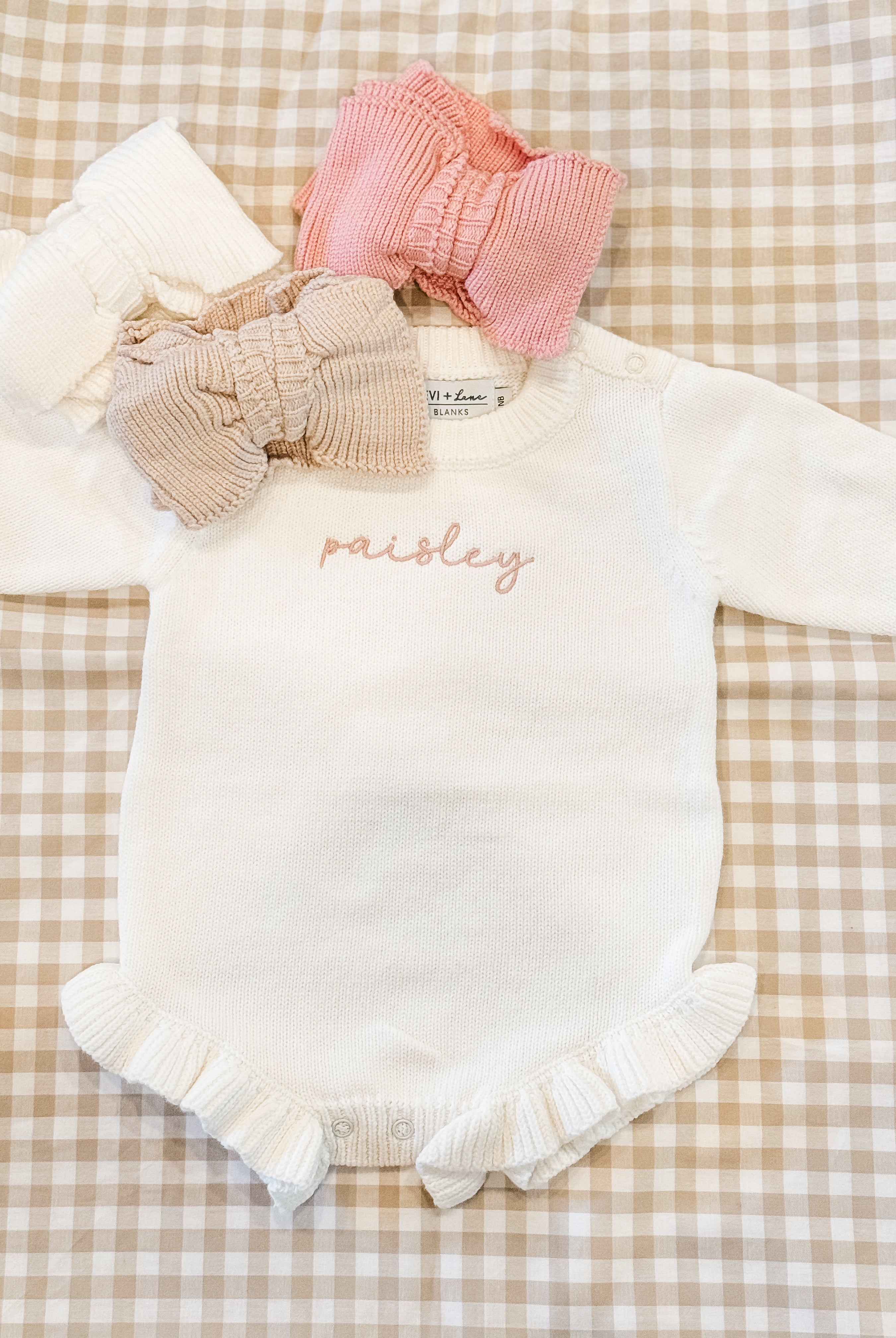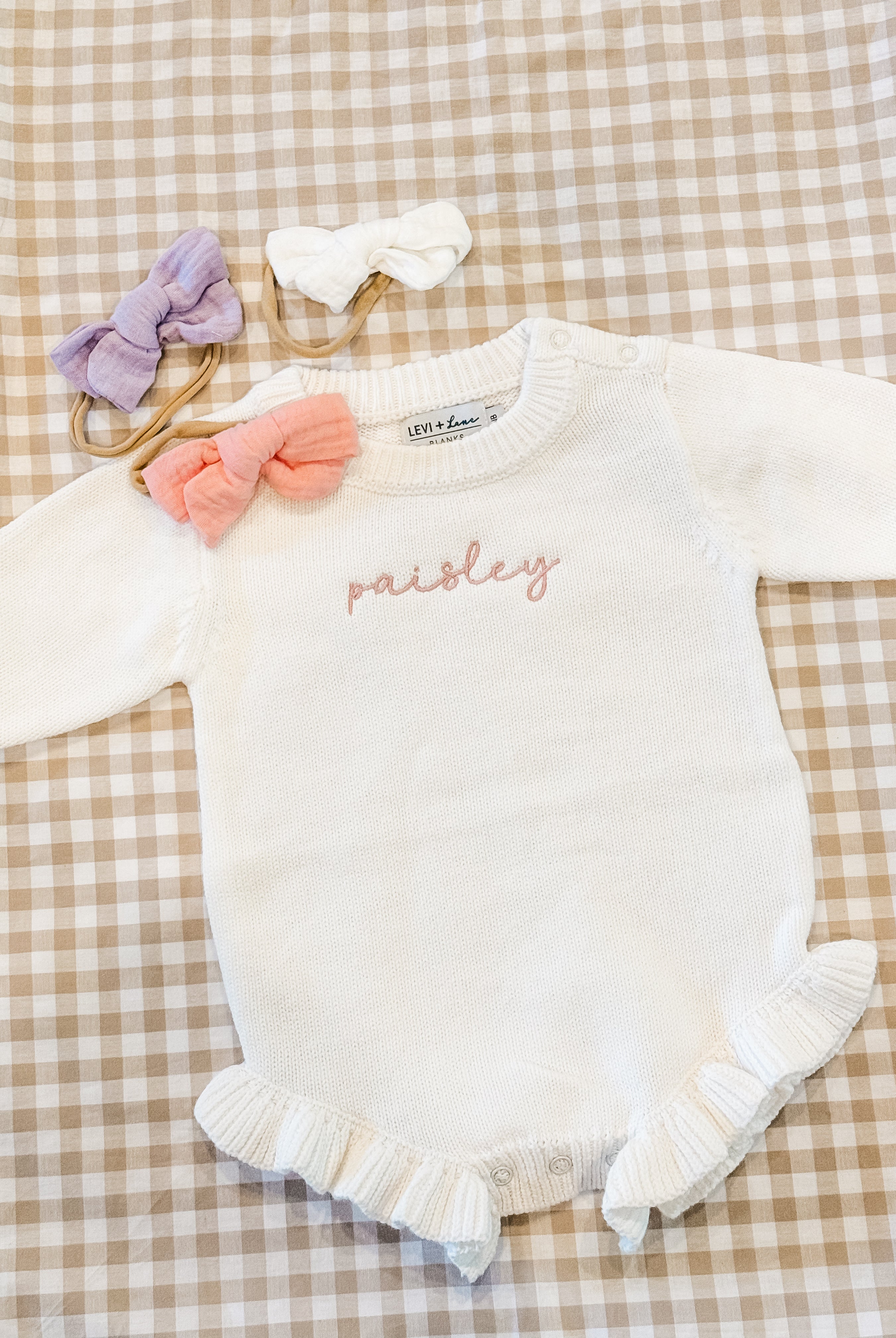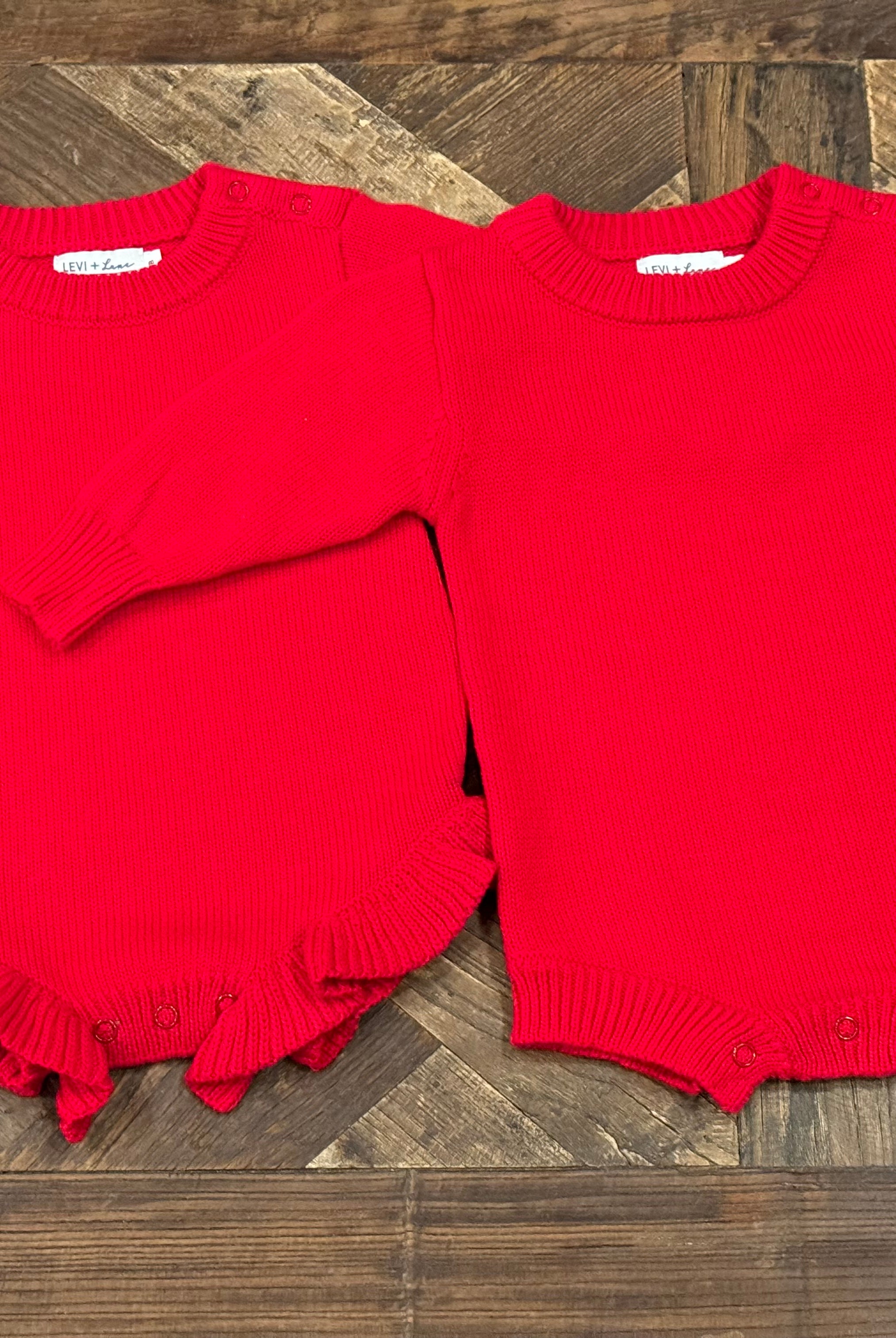 Long Sleeve Knit Ruffle Romper - NEW TTS SIZING