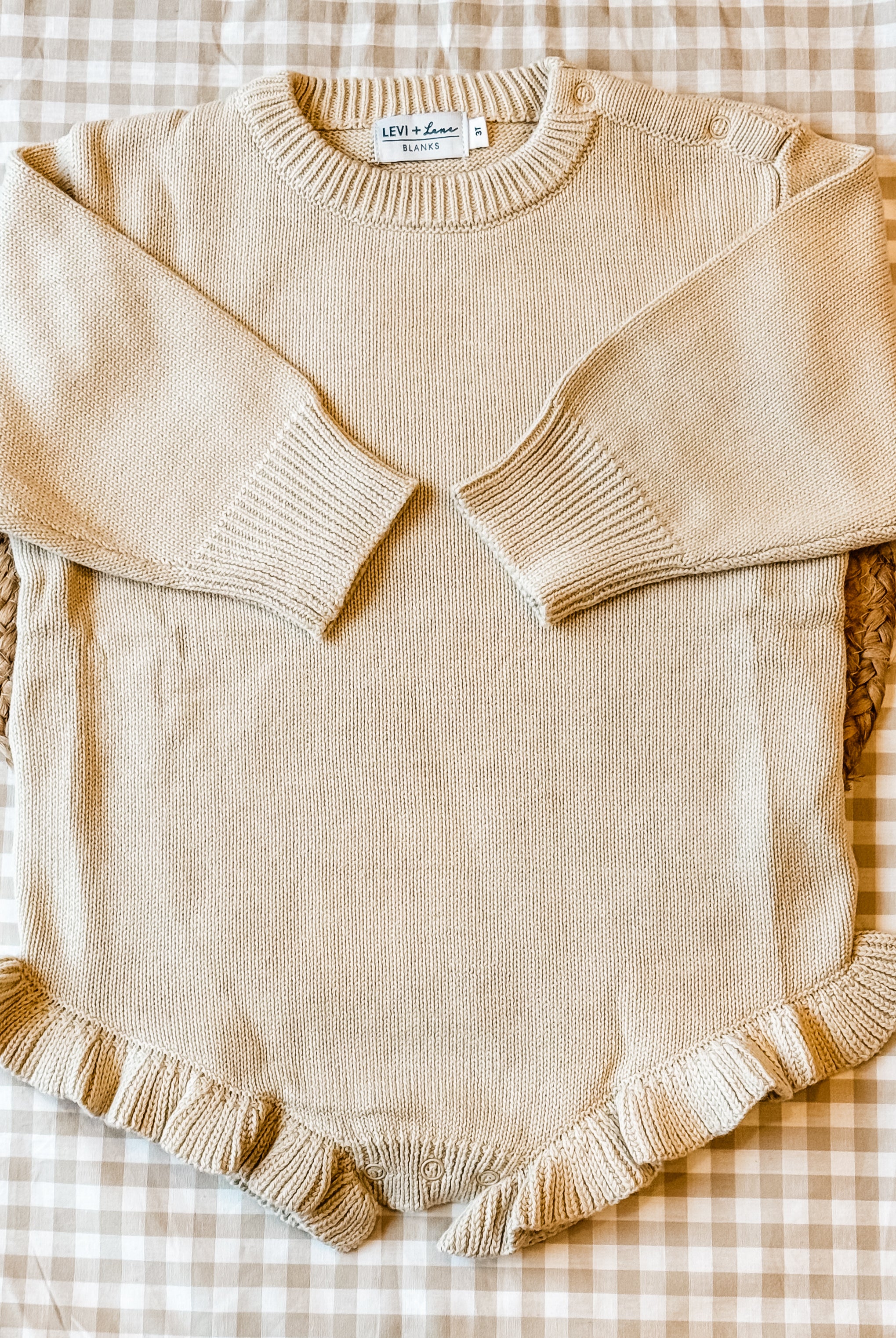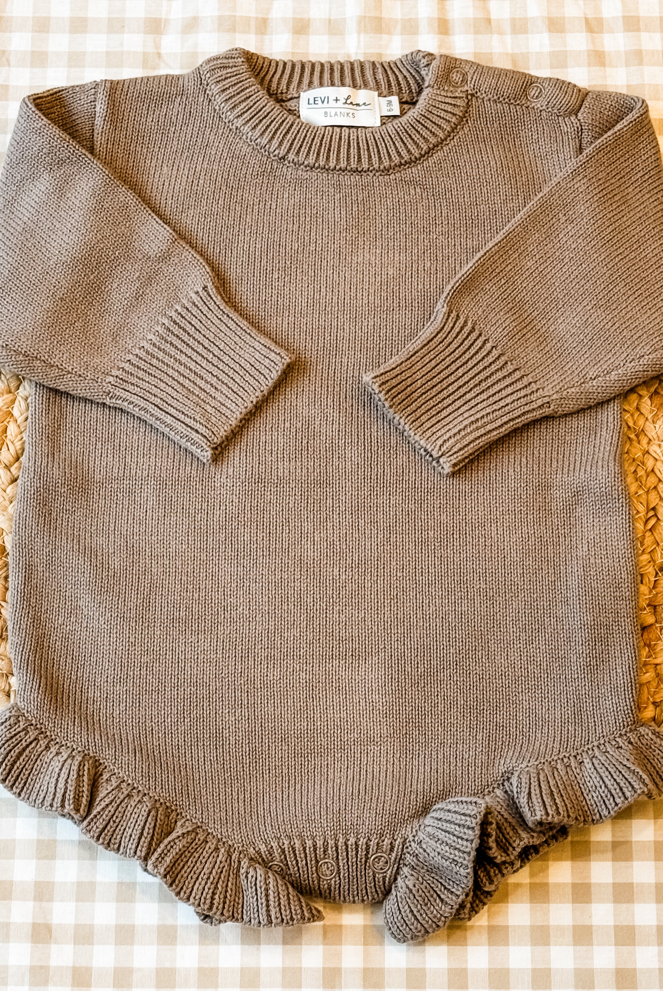 Long Sleeve Knit Ruffle Romper- ORIGINAL OVERSIZED FIT