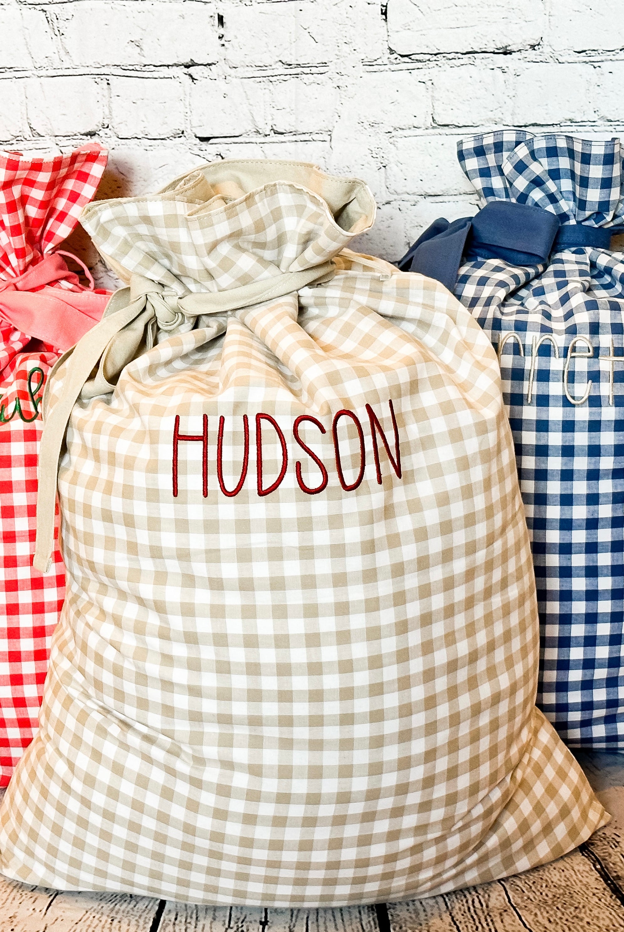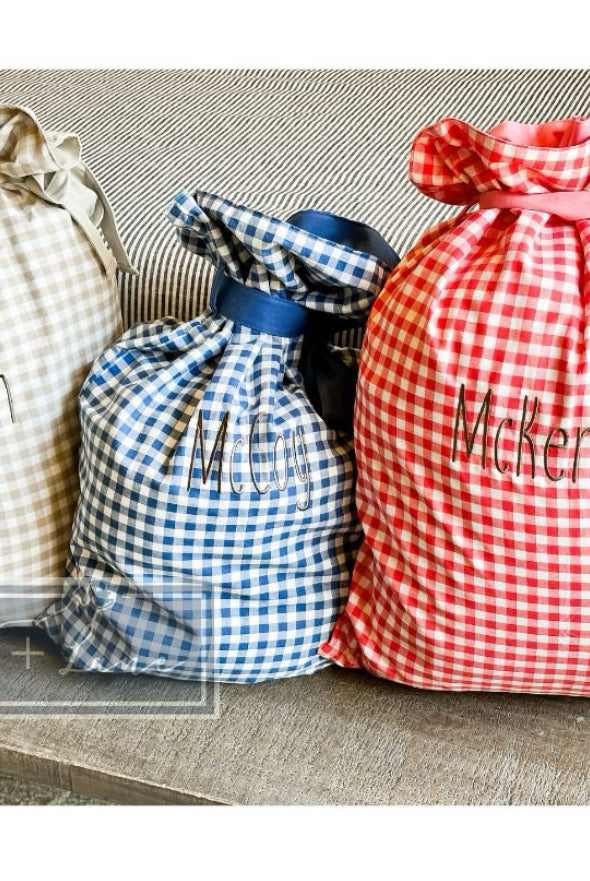 PRE-ORDER - Gingham Santa Bags - ETA 1ST WEEK OF DECEMBER