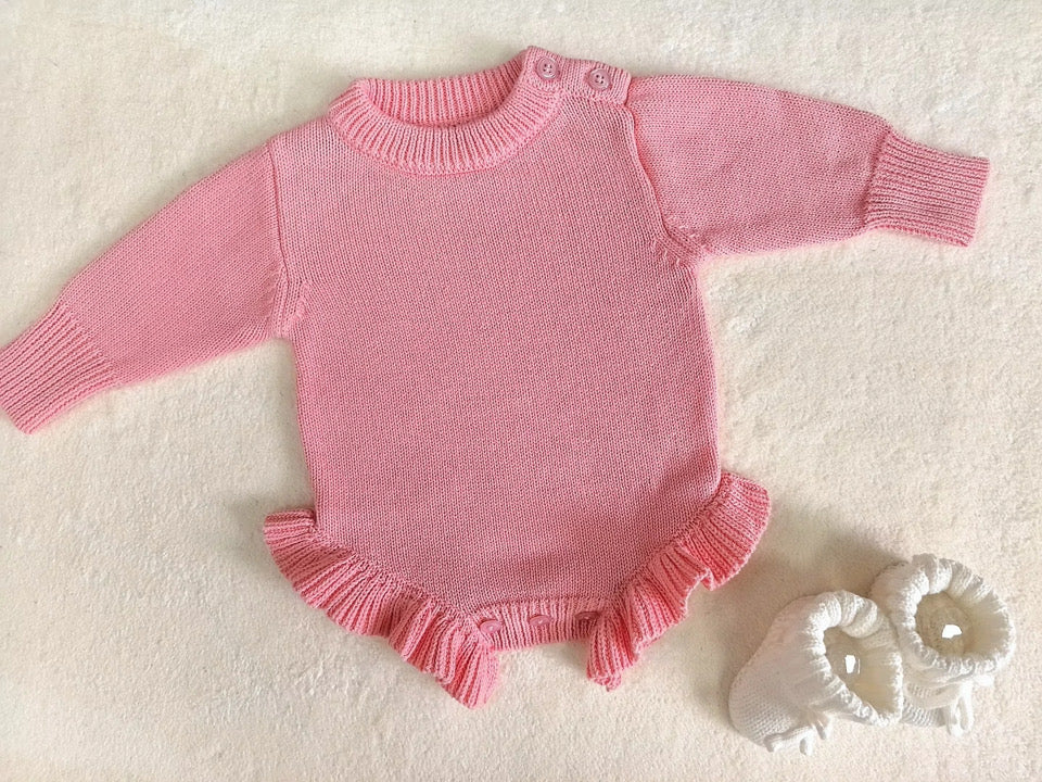 Long Sleeve Knit Ruffle Romper- ORIGINAL OVERSIZED FIT