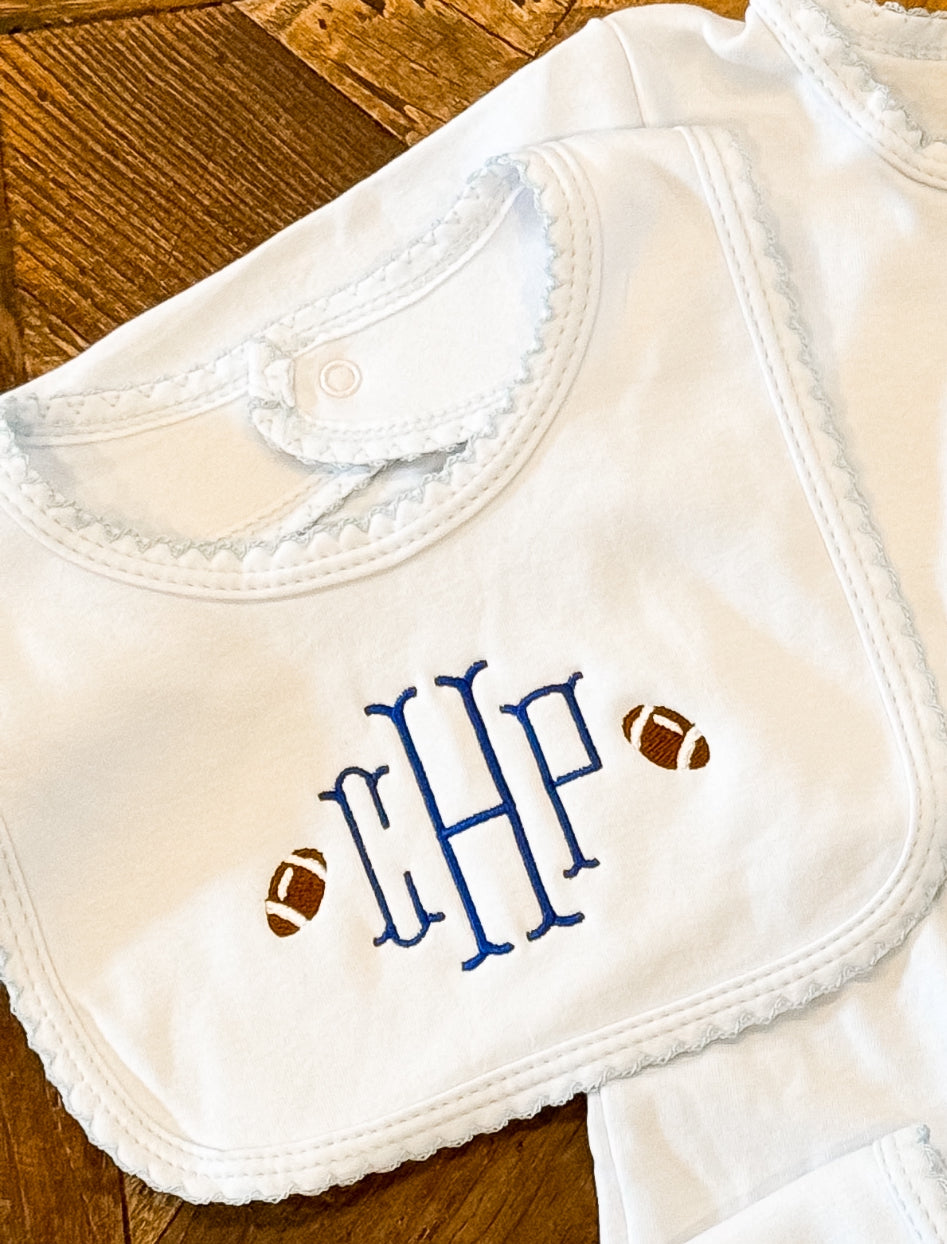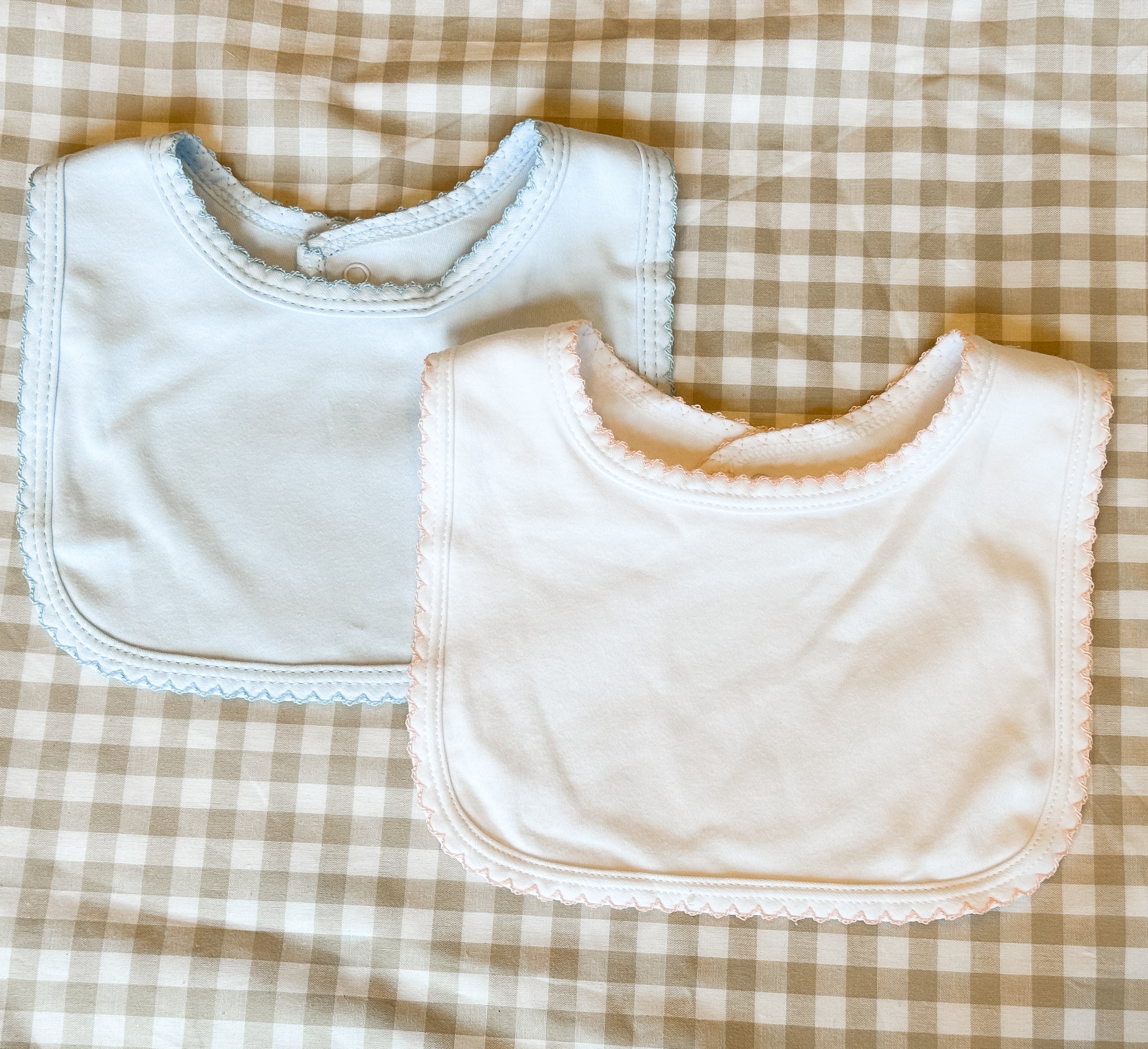 Our Picot Trim Cotton Bibs add a sweet, polished touch to everyday moments. Crafted from buttery soft 100% cotton, these embroidery-ready bibs feature delicate picot trim and a smooth surface that stitches beautifully. Thoughtfully designed to coordinate perfectly with our Picot Footies and Hats, they complete a charming set made for gifting and keepsakes.