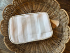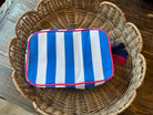 Canvas cabana cosmetic or the perfect carry all bag. These will even fit wipes and a few diapers!