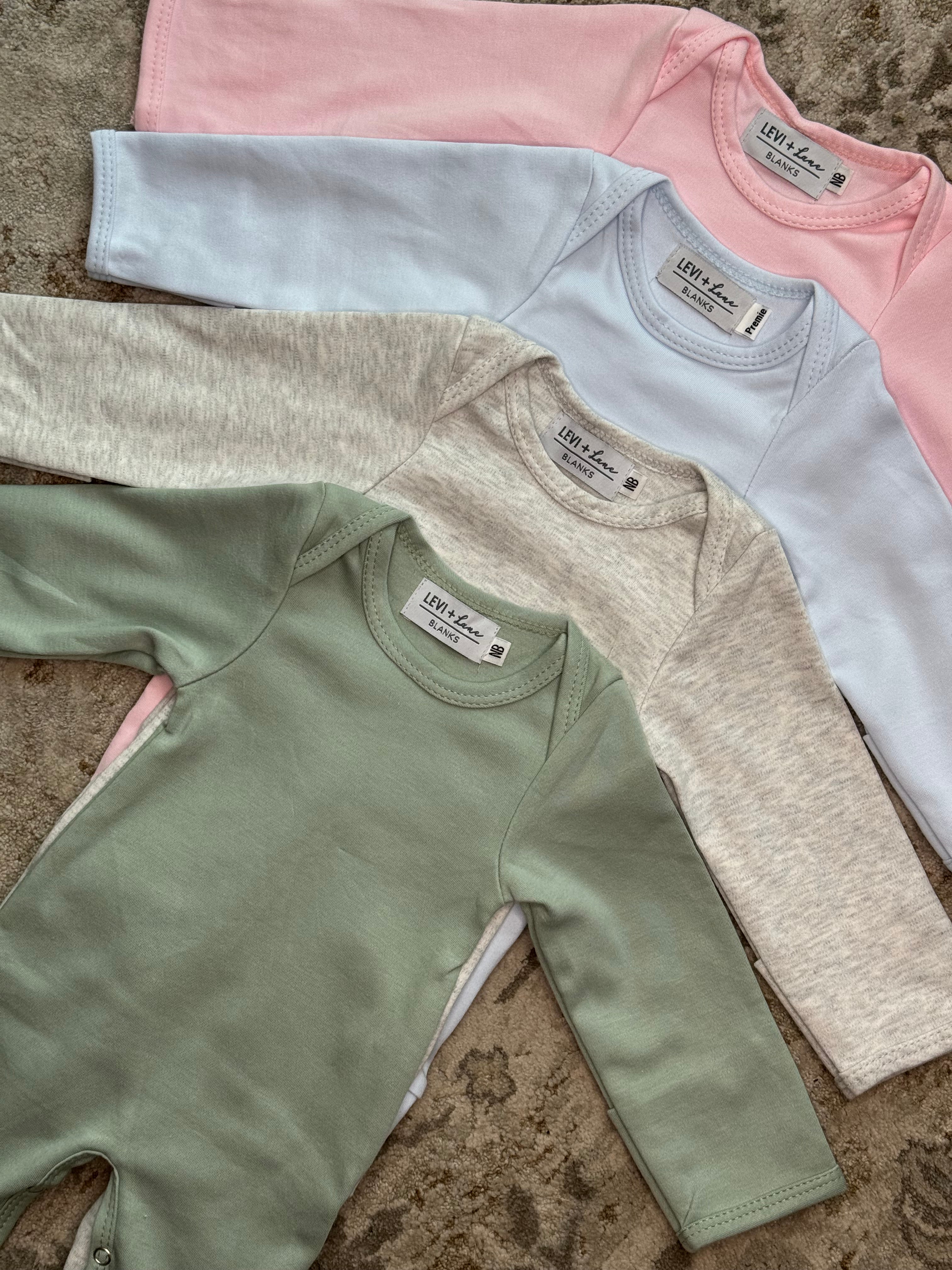 The most precious long infant rompers. Made from super thick cotton. Sage, light blue and soft pink are the same as our T-Shirt Bubble colors.