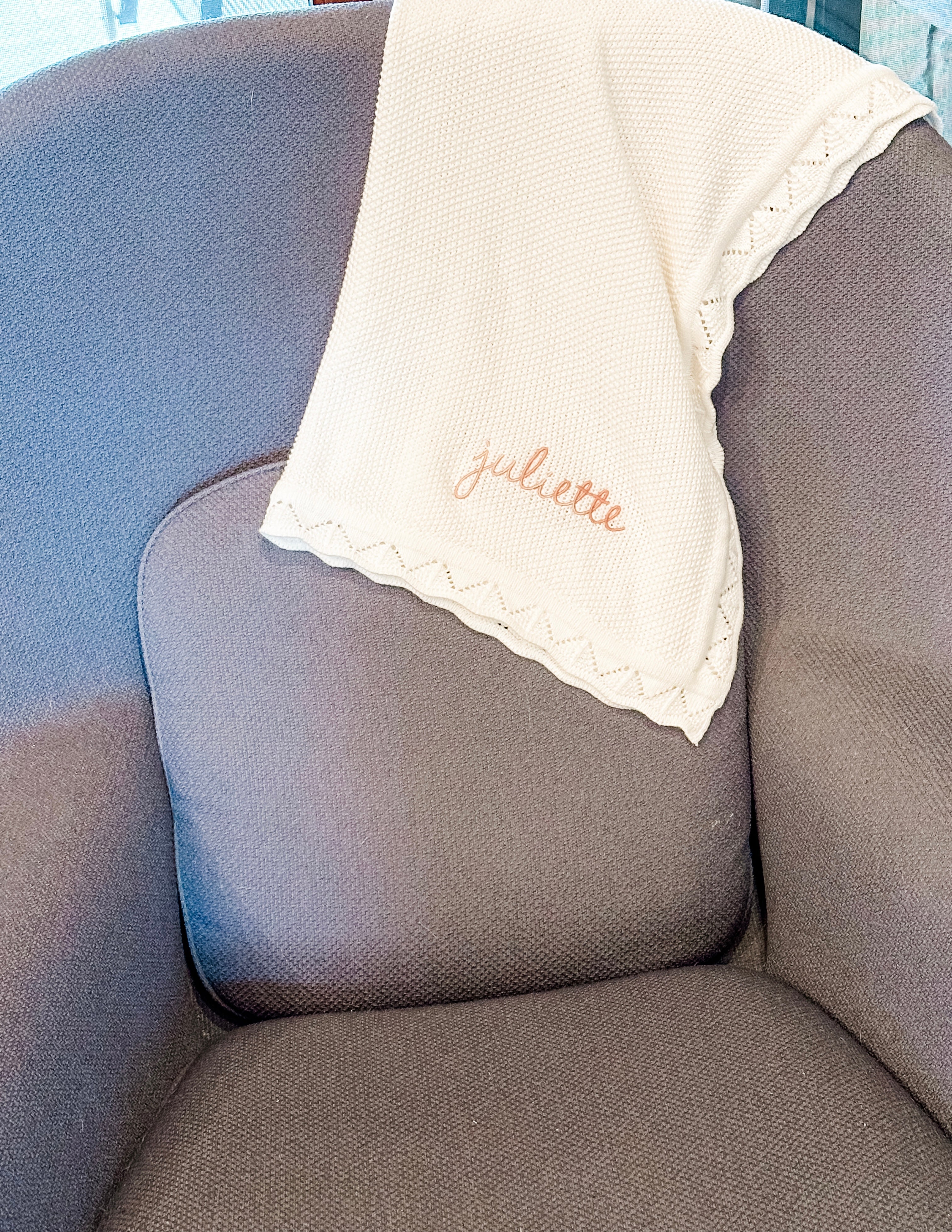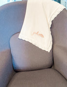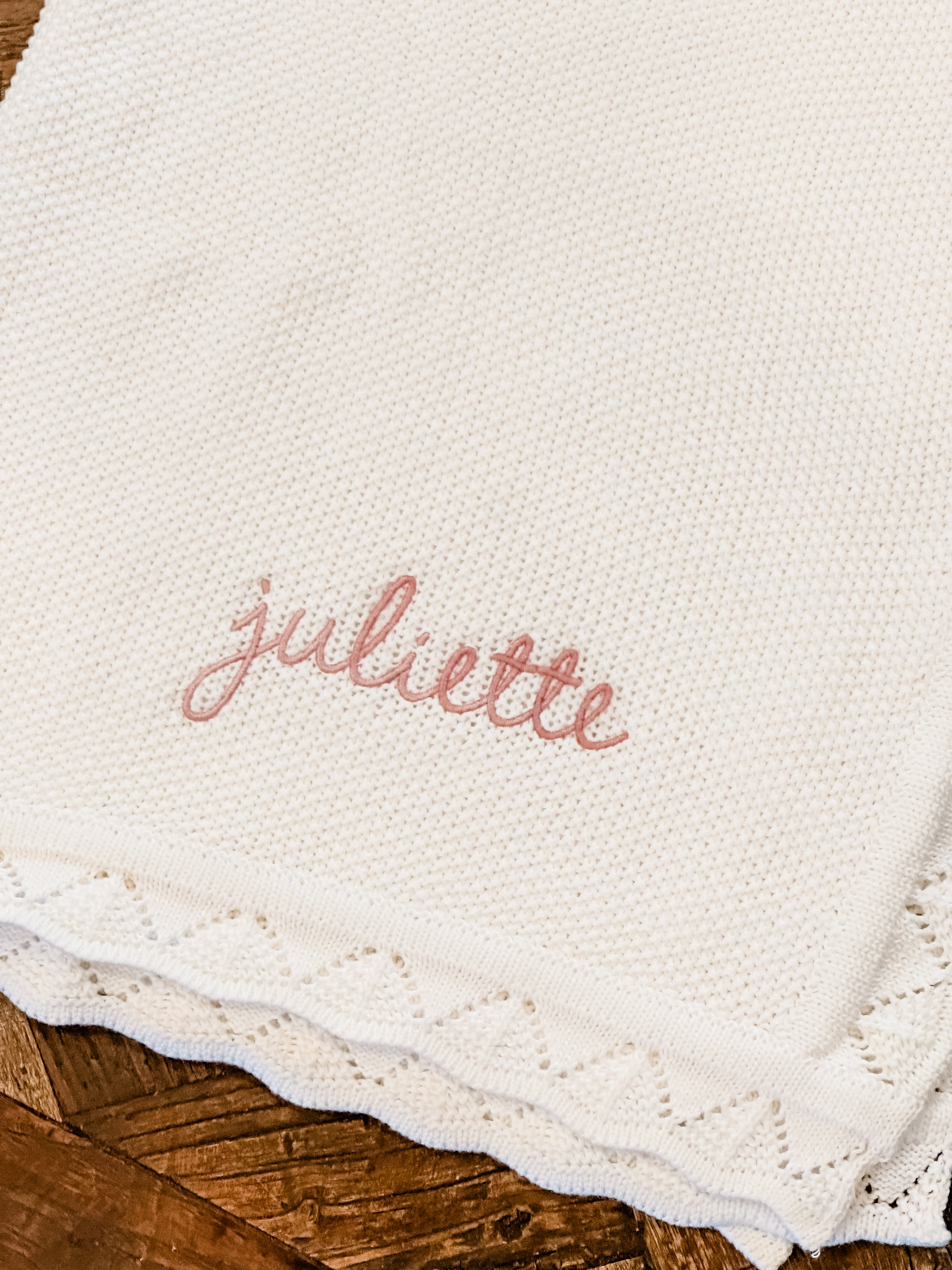 Gorgeous scallop edge detail knit cotton blanket. So soft and makes the perfect baby gift. Colors- Pink, white, ivory or mauve.